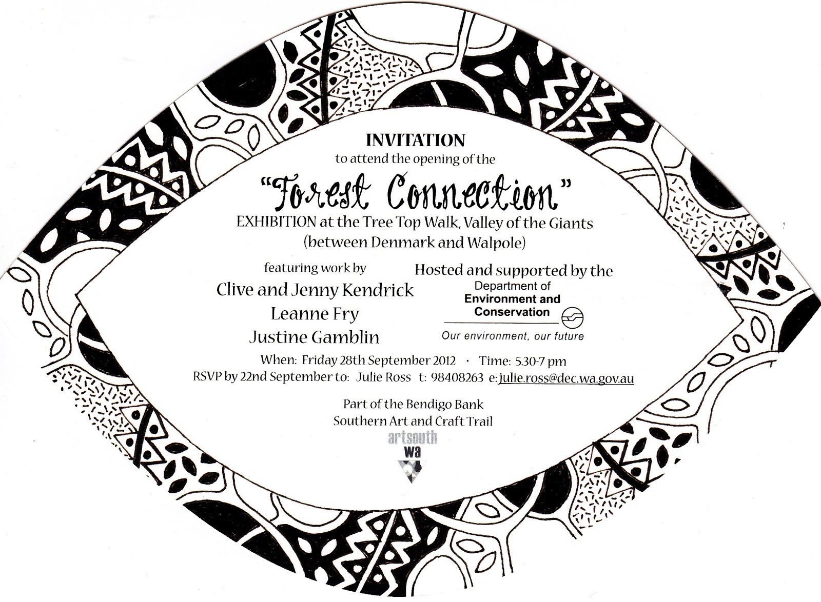 The opening night was an enormous success and such a fantastic night would not have been possible without the generous support of our host/major sponsor DEC. They offered us this beautiful room situated at the iconic Valley of the Giants Tree Top Walk. The location is just stunning. Their unwavering support of local artist must be acknowledged and especially the dedication of the Valley's able leader Ms Julie Ross.